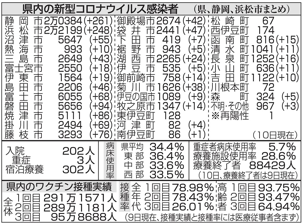 病床使用率34・4%まで低下、1374人新規感染 10日の静岡県内【新