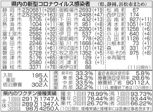 新たに1257人感染 11日の静岡県内、病床使用率33・3%【新型コロ