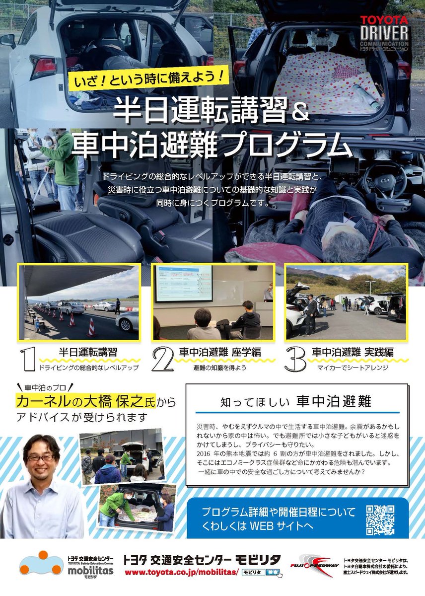 「半日運転講習&車中泊避難プログラム」を4月23日にトヨタ交通安全センター モビリタにて開催 – PR TIMES https://t.co/pDz7Kew3P1 #静岡県 #静岡県東部 #小山町 https://t.co/JVKbgktjfe