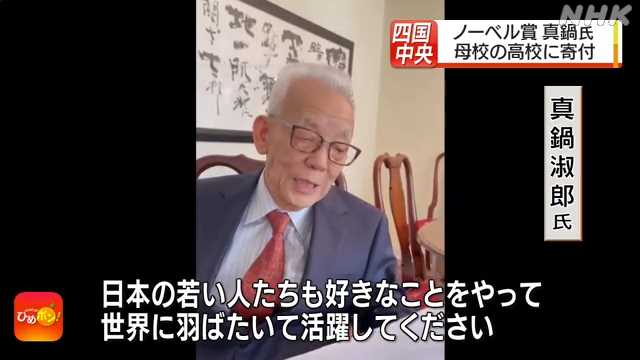ノーベル賞の真鍋さんが母校の三島高校に寄付金贈呈|NHK 愛媛のニュース -