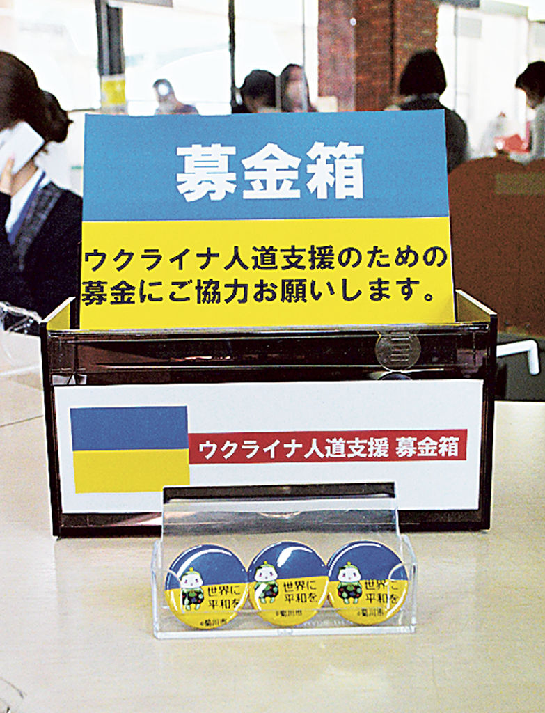 ウクライナ支援 菊川市が募金箱 缶バッジも配布|あなたの静岡新聞 - あな