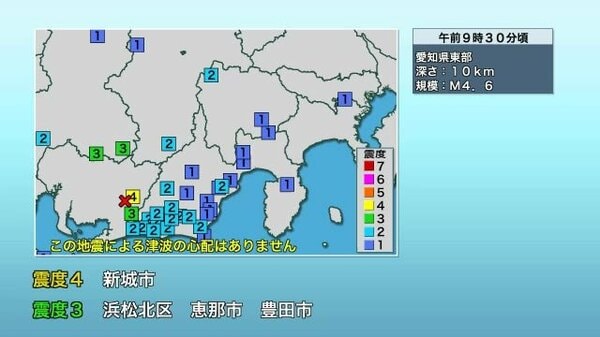 静岡県ニュース > 【地震】愛知で震度4 浜松市震度3・静岡市震度2 静岡県内広範囲で揺れ -