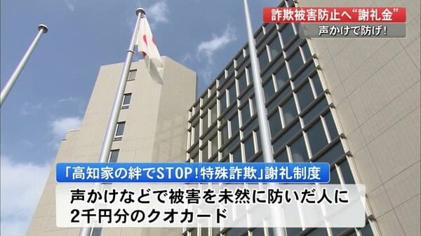 静岡県ニュース > 高知家の絆でストップ! 詐欺被害防止へ“謝礼金” 【高知】 - FNNプライムオ