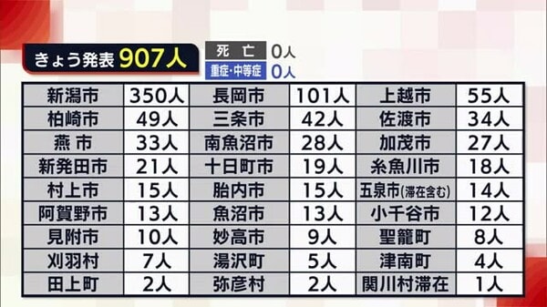 〈新型コロナ〉新潟県内過去最多907人感染発表も病床使用率は約19% 1