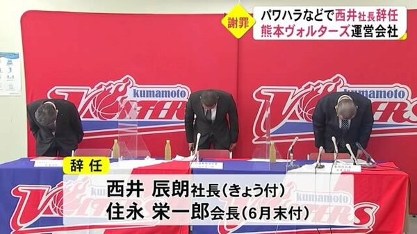 バスケB2熊本ヴォルターズ 運営会社の会長と社長が辞任表明【熊本】 - FNN