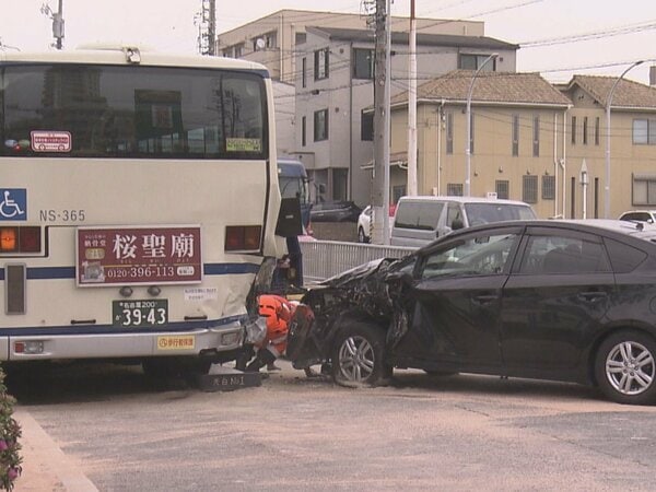 静岡県ニュース > 現場付近が通行止めとなり通勤等に影響…バス停に停車していた市バスに乗用