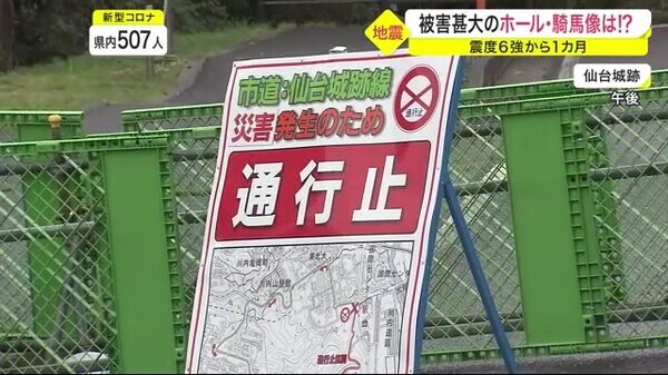 復旧3年以上 通行止め続く仙台城跡 仙台市体育館再開は? 震度6強から1