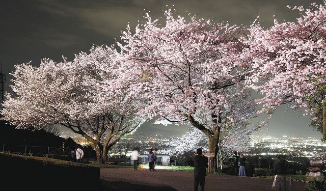 淡いピンク色くっきり 富士の公園で夜桜と夜景 :中日新聞しずおかWeb - 中