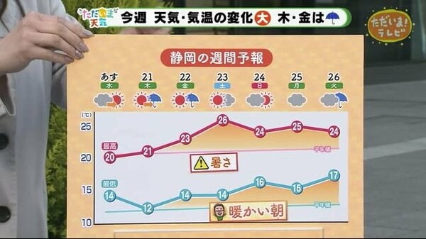 静岡県ニュース > あす水曜、東部・伊豆でにわか雨 週末は夏日の予想も【ただいま天気 4/19】