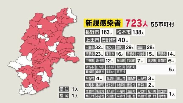 学校、児童福祉施設で集団感染7件…新型コロナ 長野県の新規感染723人 全県