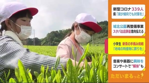 「おいしくて笑顔になるお茶を」小学生が新茶の手摘みで汗を流す 静岡・菊