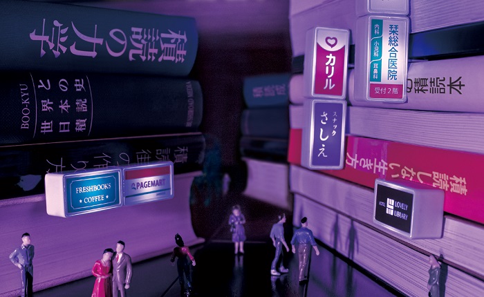 どんどん高く積み上げたくなる! 「積読町のビル看板」で積読がインテリア