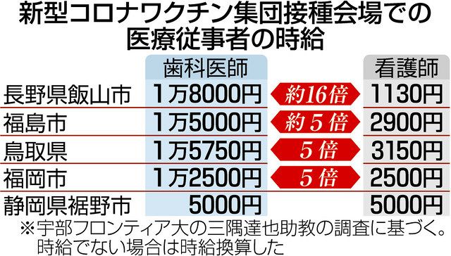ワクチン打ち手に賃金格差 歯科医と看護師、最大16倍:中日新聞Web - 中
