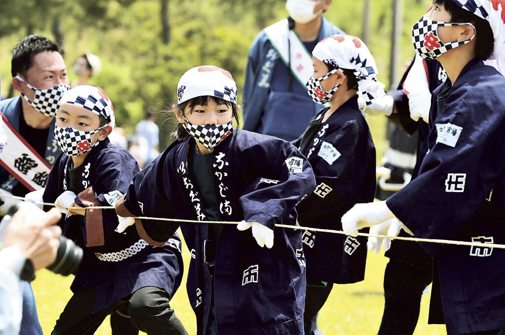 笑顔舞い上がる「子供凧揚げ」 中区龍禅寺町/「巻き竜」堂々 浜松まつり最