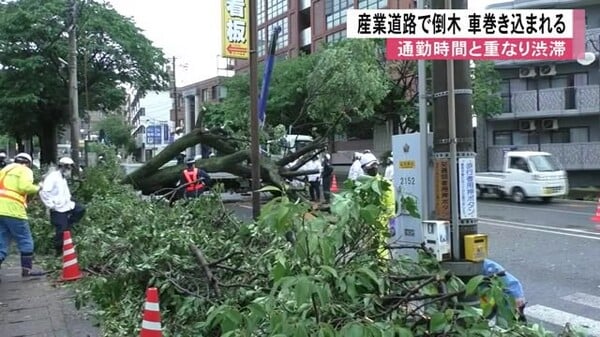 熊本市の市道で倒木 車1台が巻き込まれる【熊本】 - FNNプライムオンライ