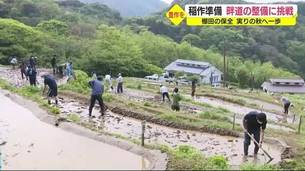稲作の準備 あぜ道の整地作業 ぬるぬるの土に悪戦苦闘 - FNNプライムオンラ