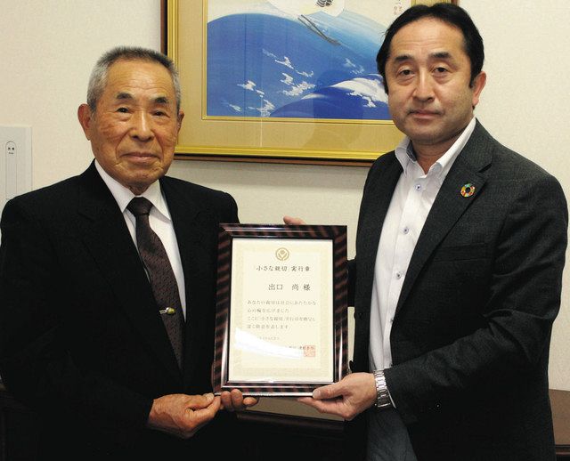 昔遊び教えて20年 熱海の84歳・出口さんに「小さな親切」実行章を贈る - 東