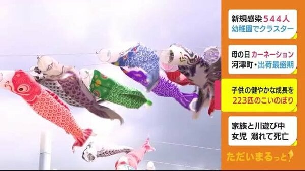 富士山にちなんで223匹! こいのぼり大空を泳ぐ 静岡・富士宮市 - FNNプラ