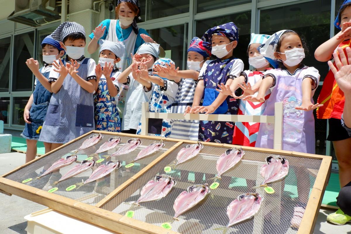 熱海の干物店が保育園児に干物開き教室 「上手にできた」と笑顔 - 熱海経済