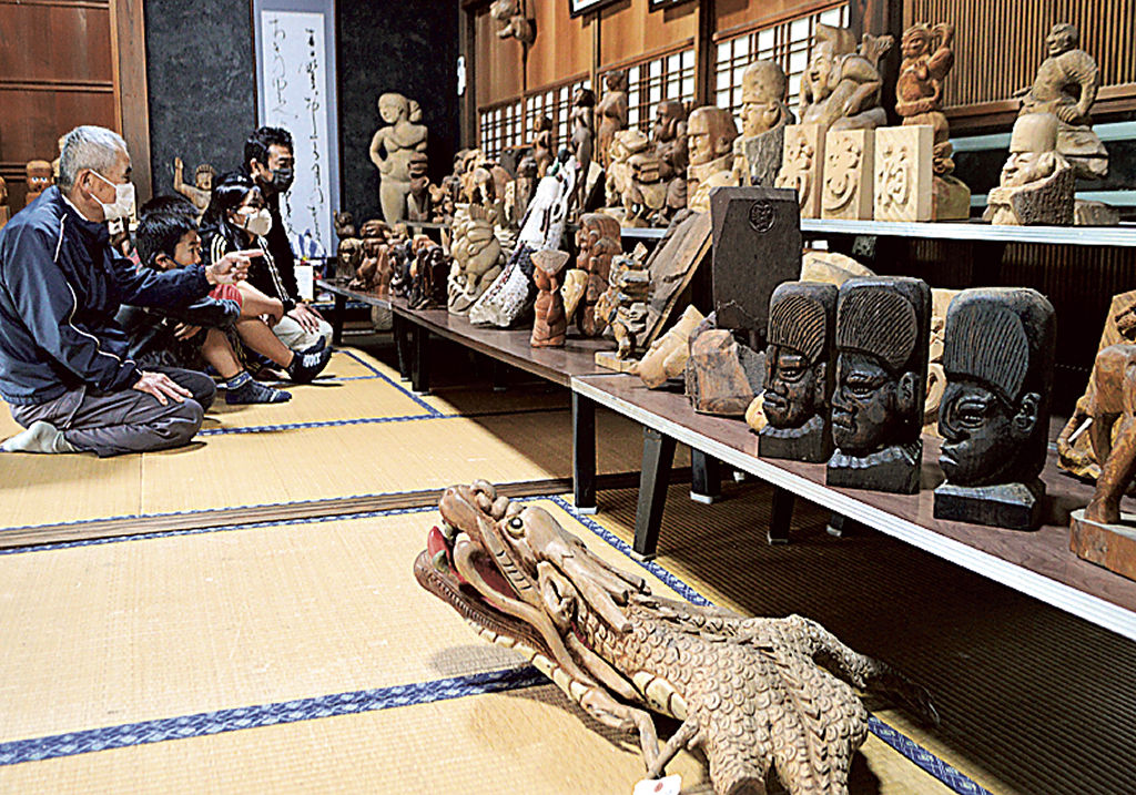 竜や人物を木彫り 愛好家の遺作並ぶ 掛川・こんにゃく亭|あなたの静岡新聞