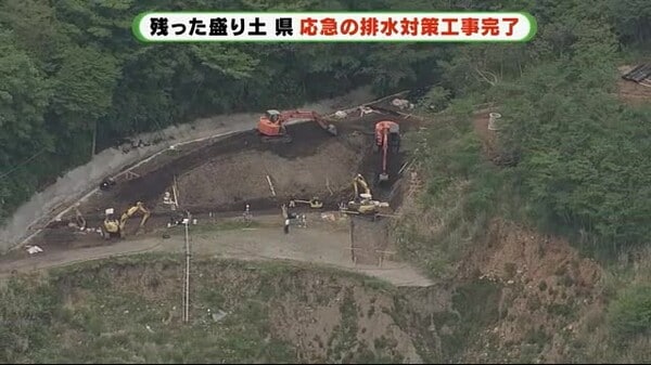 崩れ残った盛り土の応急排水対策が完了 水の流れ込みを抑止 熱海土石流 - F