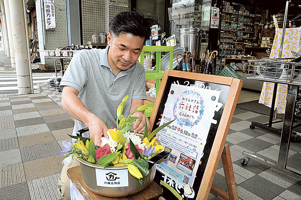 商店街に花手水 富士「吉原祇園祭」盛り上げへ 涼やかな演出|あなたの静岡