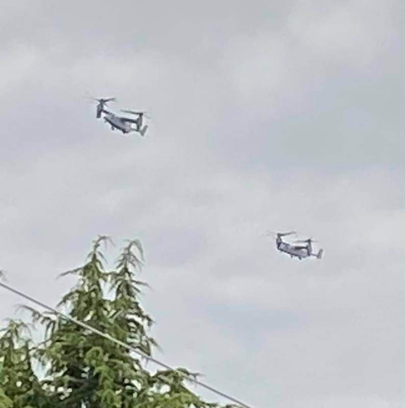 三島市:#オスプレーが2機、中学校の上で旋回の練習をしています。 – 野村りょう子(ノムラリョウコ) | 選挙ドットコム – 自社 https://t.co/r6GPgHYnRp #静岡県 #静岡県東部 #三島市 https://t.co/Tp6wu5HqXq