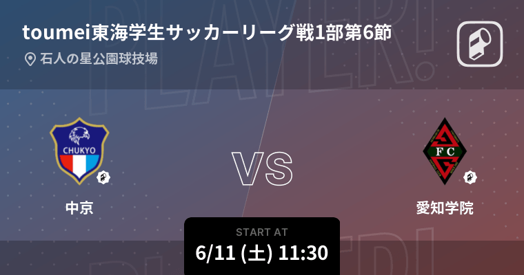 【toumei東海学生サッカーリーグ戦1部第6節】まもなく開始!中京vs愛知学院