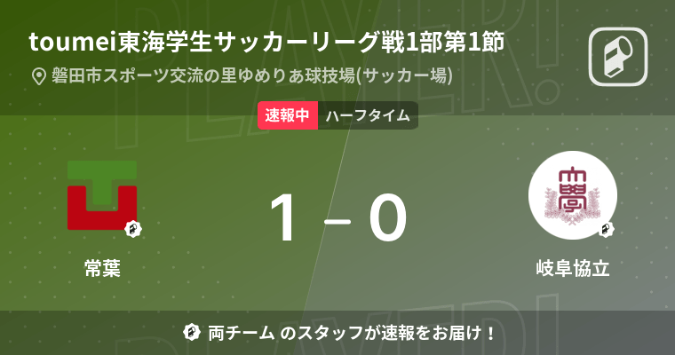 【速報中】常葉vs岐阜協立は、常葉が1点リードで前半を折り返す (2022年6月