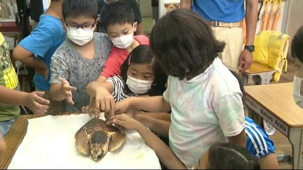 浦島太郎のカメが地元の浜に 「生きるのは大変」厳しい現実も学ぶ 静岡・下