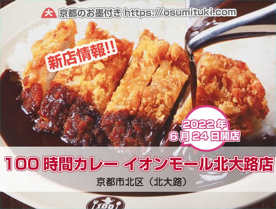 2022年6月24日オープン 100時間カレー イオンモール北大路店 - 京都のお墨