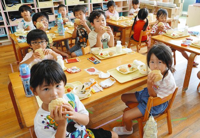市特産のお茶「つゆひかり」入りメロンパン 御前崎の学校給食に登場 - 中日