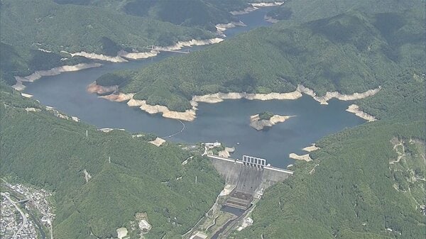 【速報】早明浦ダムの貯水率34.8%に 水位低下で旧大川村役場見えるように