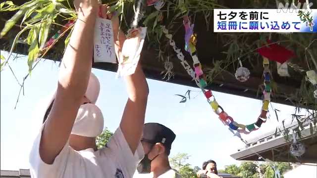 七夕を前に短冊に願い事を書いて笹に飾り付け 掛川市の図書館|NHK 静岡県
