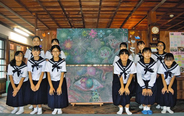 旧見付学校に夏祭りテーマの黒板アート 磐田・城山中美術部が制作:中日新