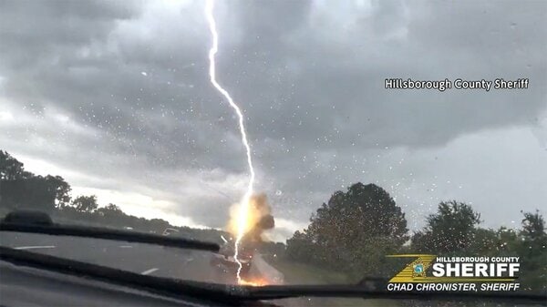 目の前で落雷 パトカー直撃 緑の空に雷 なぜこんな色 アメリカ - FNNプライ