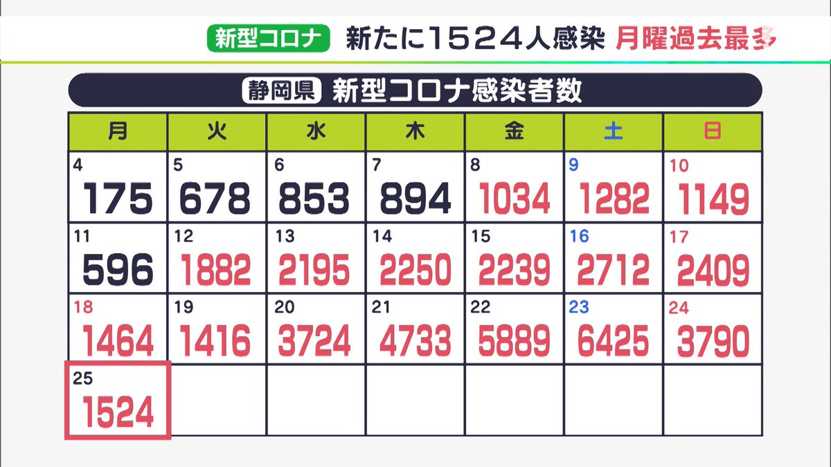 【新型コロナ】静岡県内1524人感染 月曜日では過去最多 1人死亡、クラスタ