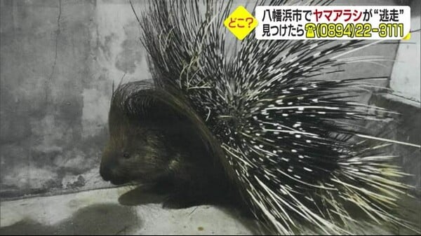 八幡浜でヤマアラシが“逃走” つがいのメスが不明 人を襲う可能性は低く 発