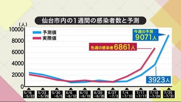 仙台市内の感染者「さらに増加」予測 7月25日~31日 下水に含まれるウ