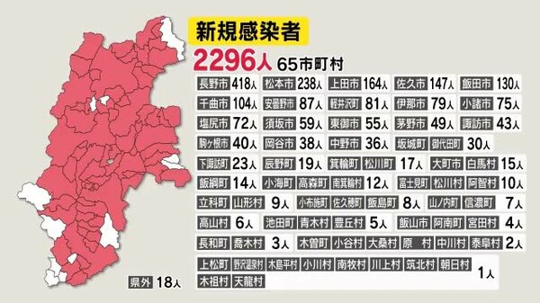 【続報】高齢者施設、医療機関で集団感染6件 長野県の新規感染2296人 病床
