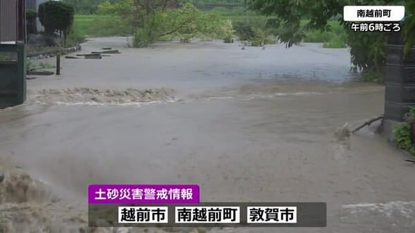 越前市・南越前町・敦賀市「土砂災害警戒情報」 床上浸水30軒で自衛隊要請