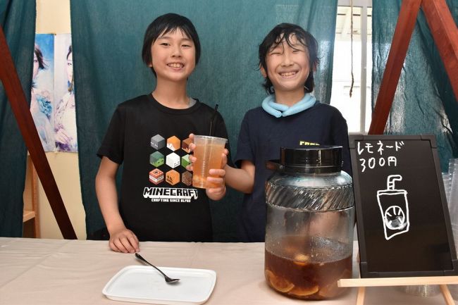 児童2人、レモネード販売 上砂川・中央小の寺内君と小山君手作り 売上金で