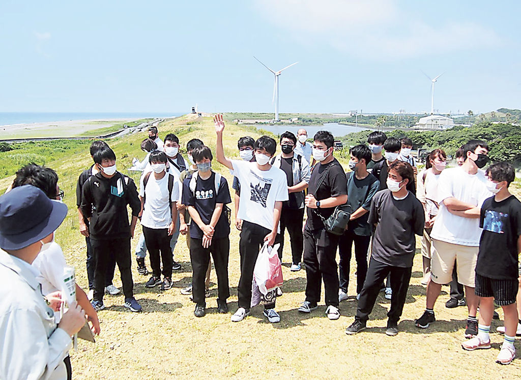 静岡理工科大土木工学科1年生 磐田の防潮堤整備の現場見学|あなたの静岡