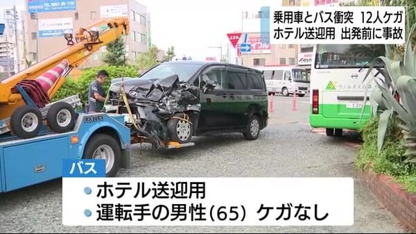 乗用車とホテル送迎バス事故 男女12人ケガ 意識あり命に別条なし JR伊東