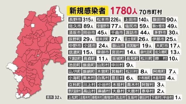 10人死亡 1日の発表で過去最多 新型コロナ 長野県の新規感染1780人 病床使