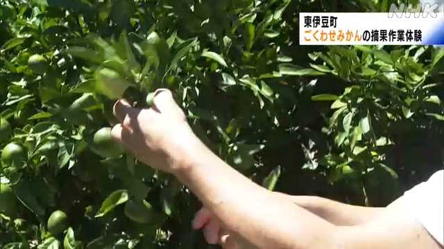 ごくわせミカンの摘果作業を体験 東伊豆町の観光農園|NHK 静岡県のニュー