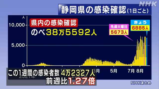 新型コロナ 23日 6885人の感染確認 感染者13人死亡|NHK 静岡県の
