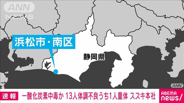 【速報】浜松市のスズキ本社食堂で一酸化炭素中毒か 13人搬送うち1人意識不明 消防 | KSBニュース | KSB瀬戸内海放送 – KSB瀬戸内海放送 https://t.co/dJ1uJKo31T #静岡県 #静岡県西部 #浜松市 https://t.co/5rqqfO7Ho8