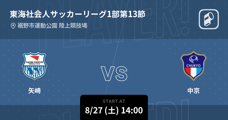 【東海社会人サッカーリーグ1部第13節】まもなく開始!矢崎vs中京 (2022年8