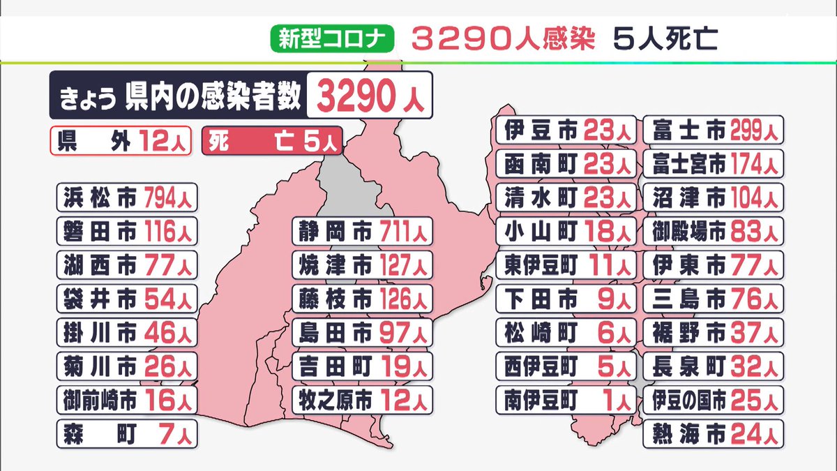 【新型コロナ】新たに3290人感染 木曜日4000人以下は1か月半ぶりー静岡県 -